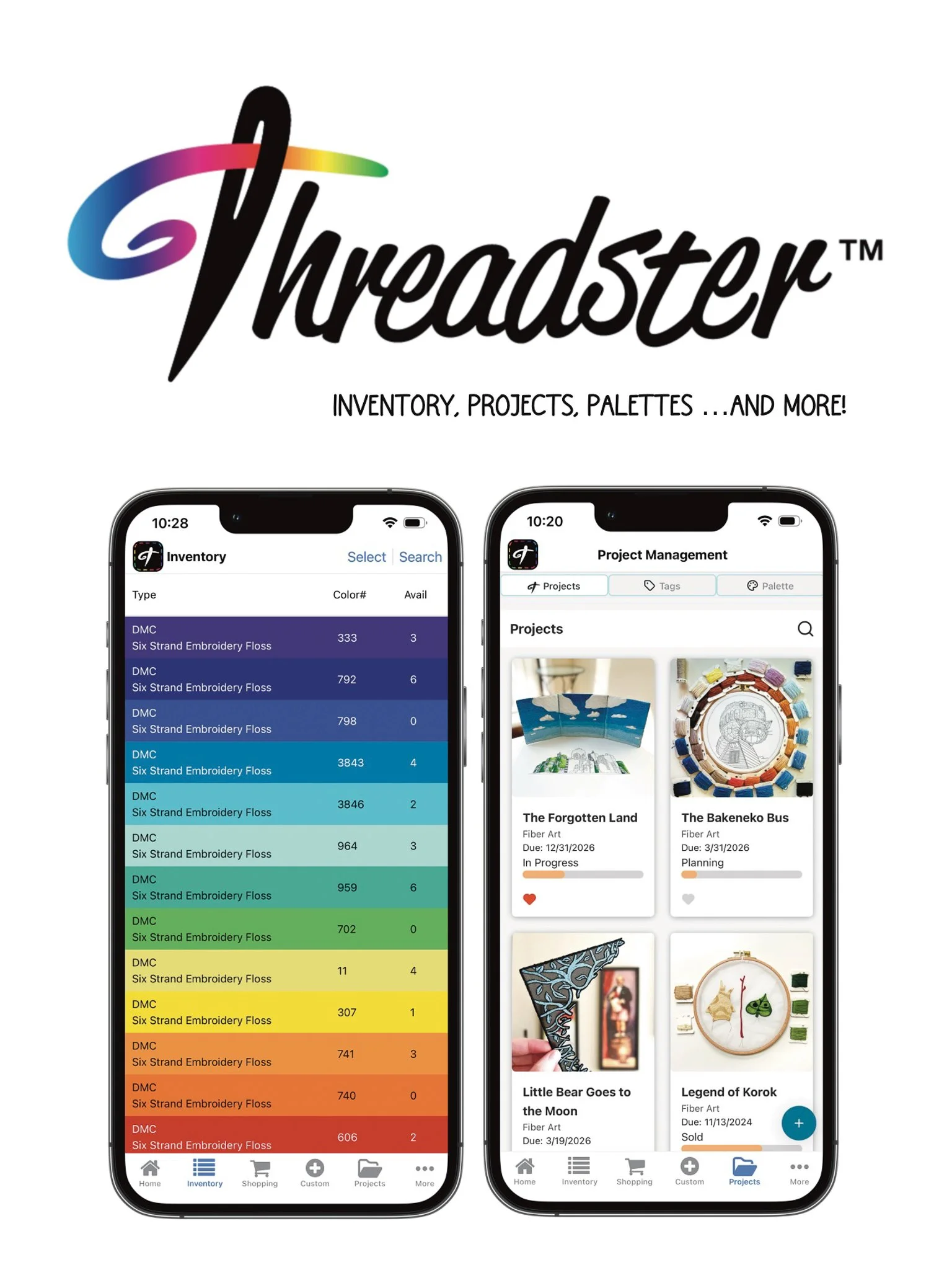Threadster is the creation of a husband and wife duo to help manage your thread inventory, color palettes, patterns, & projects, so you can spend more time doing what you love, stitching!